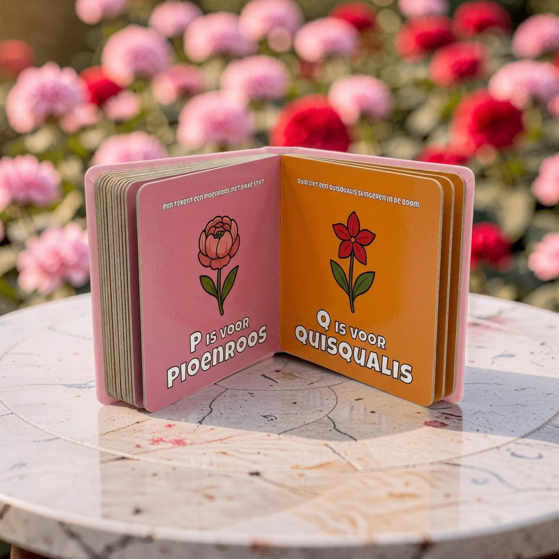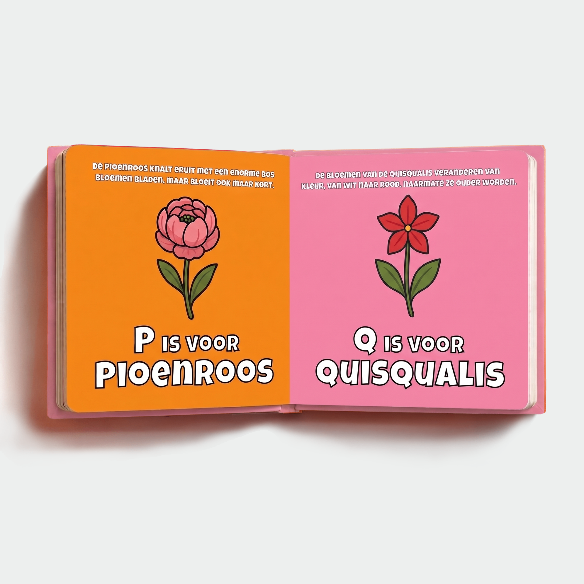 Zoek je een uniek kinderboek over bloemen en de natuur? Met dit kleurrijke ABC boekje leert je kind het alfabet ontdekken in een wereld vol geur en kleur. Hét ideale kraamcadeau of een bloemrijk verjaardagscadeau voor peuters en kleuters van 0 tot 6 jaar.